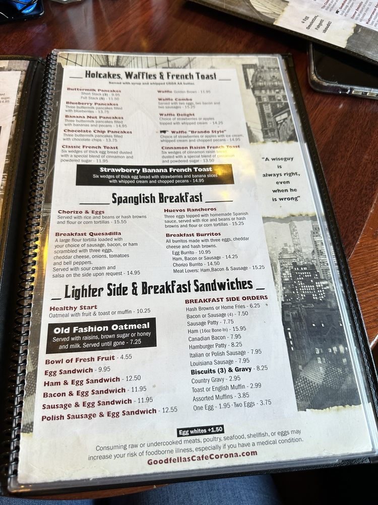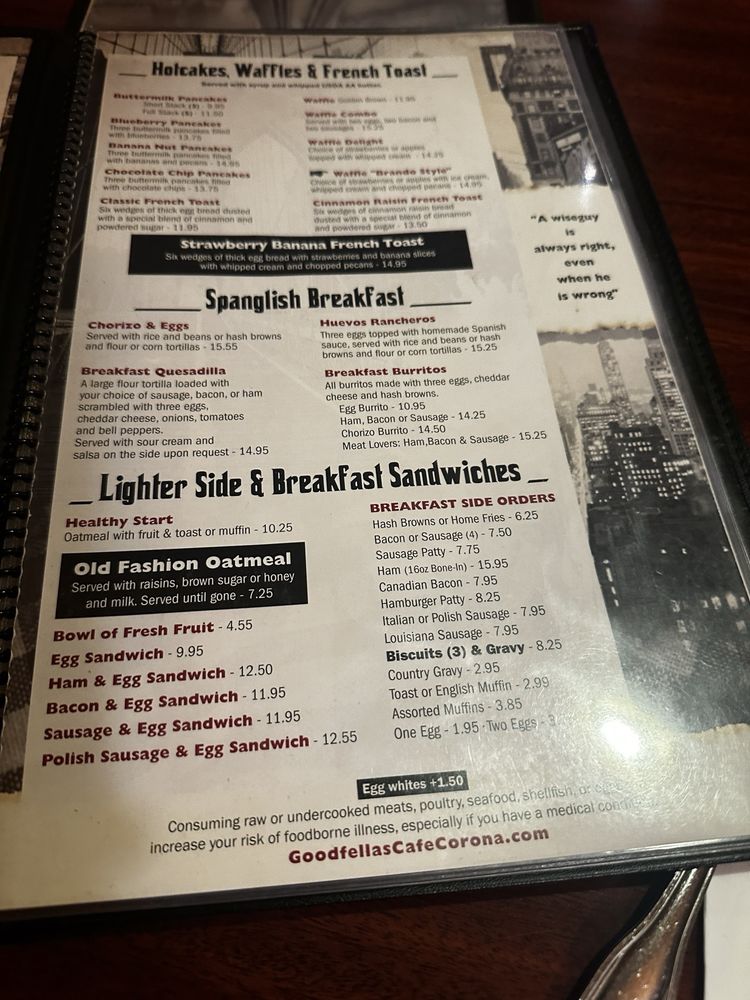 Welcome to GoodFella’s Cafe, an American diner in Corona, CA, where breakfast and brunch shine. This cafe is a gem for food lovers, offering an extensive menu with delicious options, including vegan and vegetarian dishes. Expect to find classic favorites like eggs Benedict and steak and eggs, each made with fresh ingredients that delight the palate.