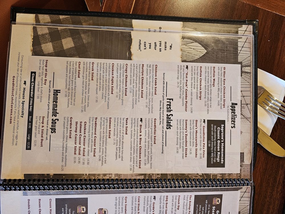 This family-friendly space, equipped with ADA-compliant access, is perfect for gatherings. With reservations available, happy hour specials, and onsite parking, GoodFella’s Cafe makes every visit memorable. Whether you're celebrating a special occasion or enjoying a casual meal, this diner promises satisfaction in every bite.